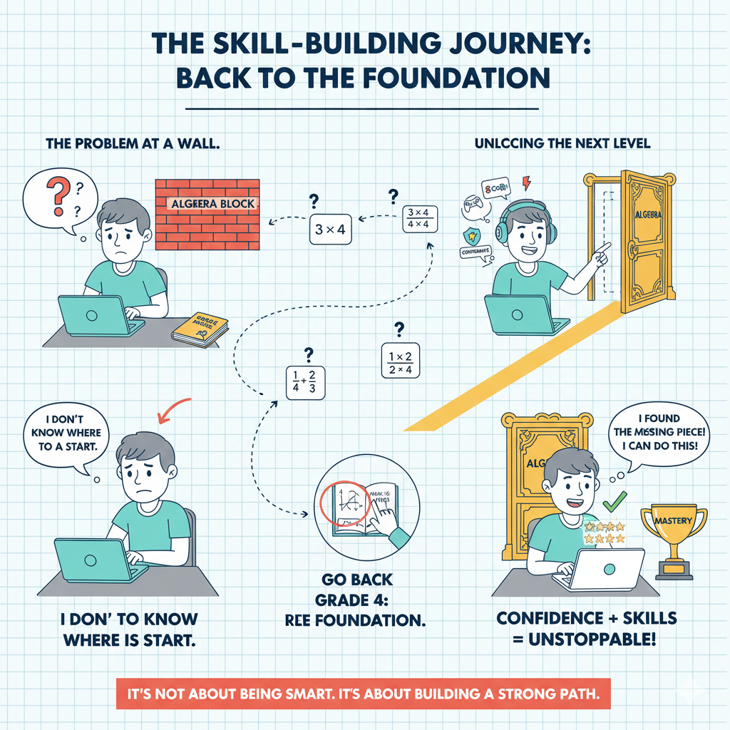 If the current concept is difficult, the root problem is almost always in a missing foundational skill.